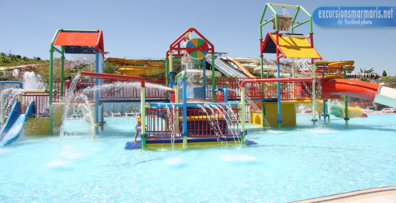 There are several theme zones in the water park. They are presented by a zone of pirates, animals and reptiles. Also there is a zone with the imitation of real waves and waterfalls. In summer the water park starts to work at about 10.00 o’clock in the morning and finishes at about 18.00 in the evening. Moreover, the water park has a very convenient location, and it takes just five or ten minutes to get there from Marmaris. The main conception of the owners of the water park is to provide only the best and the safest facilities. Because of it the water is cleaned several times a day, and the equipment and all the slides are examined by experienced staff. Also there are special rooms where all the visitors can leave their clothes, bags, change clothes. After having rides all the guests can take a shower. There is a bar with comfortable soft chairs for those who are tired and want to relax. The menu of he bar is very diverse and includes snacks, sweet things, cold and hot drinks and etc. There are small golf fields for those who can’t live without this activity.